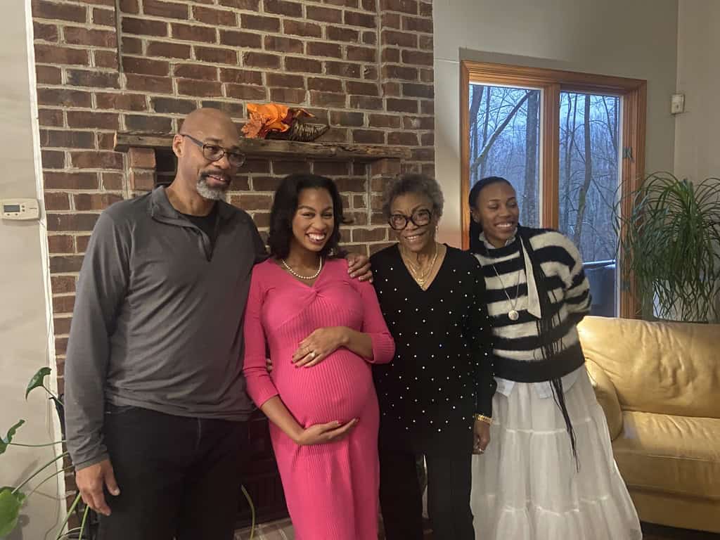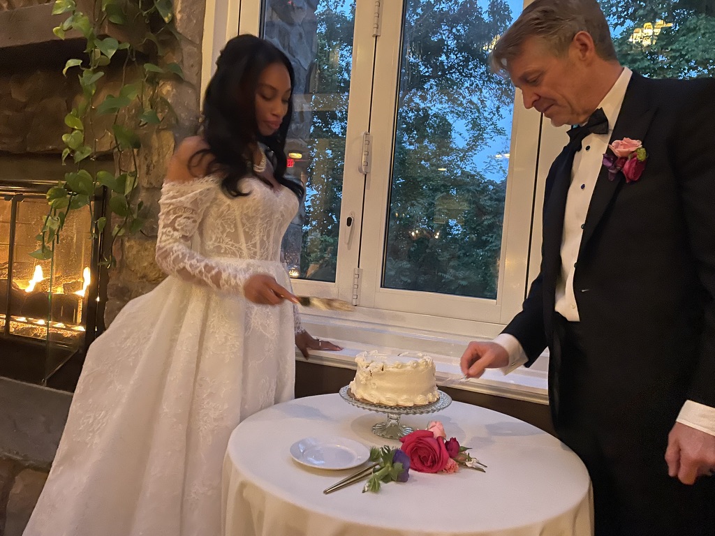 Leah and Cameron with gender reveal cake